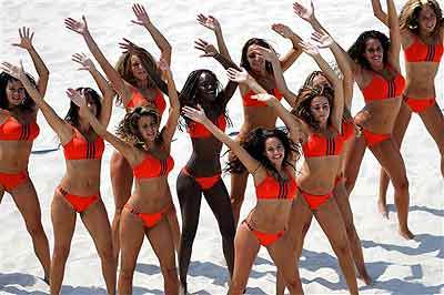 Members of the American Olympics Beach Volleyball dance team practice