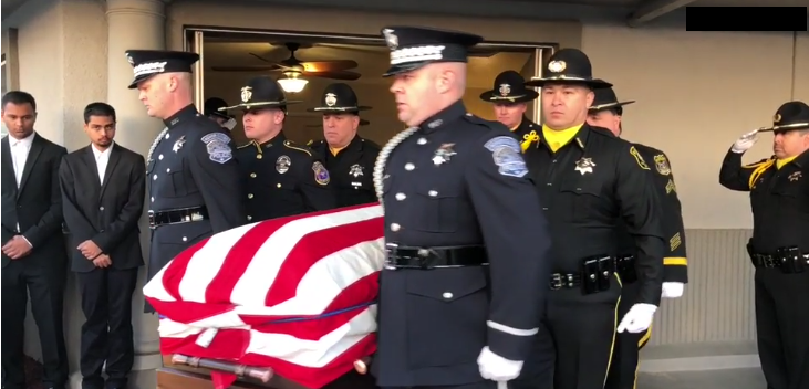 Ronil Singh's body traveled from Modesto to Newman where crowds of people stood by to pay their respects. An Honor Guard Viewing was held at the West Side Theater between 9 a.m. and noon.