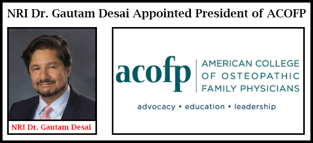 NRI Dr. Gautam Desai, a distinguished physician, has been appointed as the new President of the American College of Osteopathic Family Physicians (ACOFP). This prestigious appointment highlights Dr. Desai’s longstanding contributions to osteopathic medicine and his leadership within the medical community.