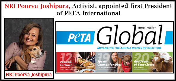 NRI Poorva Joshipura, activist, has been appointed as the first-ever President of PETA International, marking a historic milestone for the global animal rights movement.