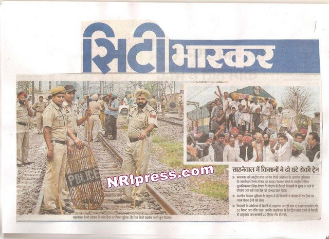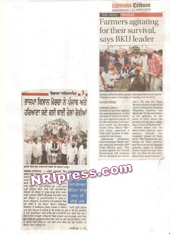 Bharatiya Janata Party Kisan Morcha National Secretary Sukhminderpal Singh Grewal announced that Kisan Morcha will organise a Rail Roko agitation in eight states of the country on April 3 to impress upon the UPA government to ensure implementation of the recommendations of the MS Swaminathan Committee and provide Rs 500 bonus per quintal on wheat. Grewal is also Incharge of Jammu and Kashmir from Party said the one-day Rail Blockade would be held in eight wheat producing states of Punjab, Haryana, Himachal Pradesh, Jammu and Kashmir, Rajasthan, Uttar Pradesh, Madhya Pradesh and Uttakhand. He said that this would be a symbolic protest and would serve as a warning to the Congress led UPA Government to accept the Demands of the farming community.