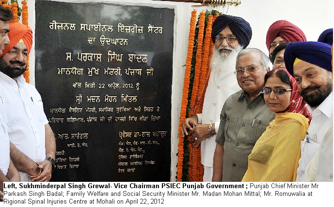 Addressing the public gathering after the formal inauguration of the Regional Spinal Injury Center (RSIC) here at Sector 70, Mr. Badal said that to ensure the best and affordable health care & diagnostic services besides imparting the quality education at all levels be it at school, college and university level was the prime objective of our government. He said this center equipped with the state-of-the-art facilities would provide the best treatment to the patients inflicted with spinal injuries besides paraplegics from Punjab, Haryana, Union Territory of Chandigarh, Himachal Pradesh, Rajasthan and J&K within their reach. He said that the state government would spare no efforts