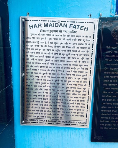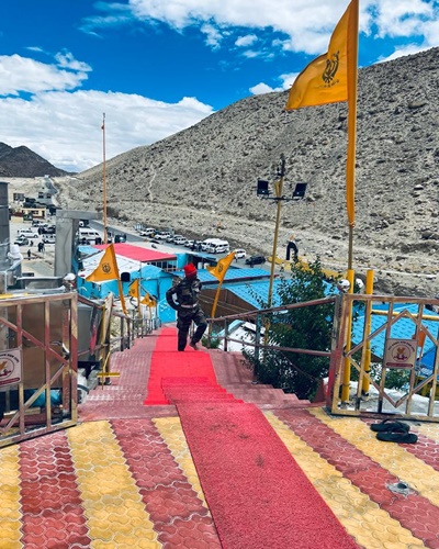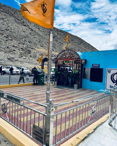 Gurdwara Pathar Sahib, is a beautiful Gurudwara sahib constructed in the memory of Guru Nanak, about 25 miles away from Leh, on the Leh-Kargil road, 12000 ft above sea level. The Gurdwara was built in 1517 to commemorate the visit to the Ladakh region of Guru Nanak Dev, the founder Guru of the Sikh faith.