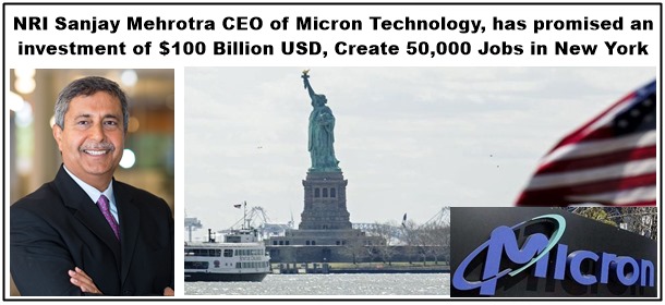 NRI Sanjay Mehrotra CEO of Micron Technology, has promised an investment of $100 Billion USD, Create 50,000 Jobs in New York
