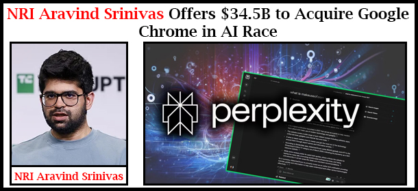 NRI Aravind Srinivas, Entrepreneur, CEO of Perplexity AI, has reportedly offered $34.5 billion to acquire Google Chrome, the world’s most widely used web browser with an estimated 3 billion users.
