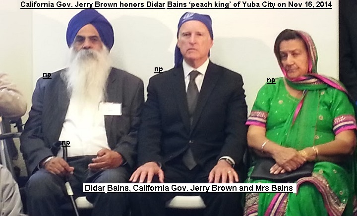 On Nov. 16, Sunday, Gov. Jerry Brown went to Sikh Gurdwara (Sikh Temple) at Sacramento to honor Didar Bains, “peach king of California, for his service to our American society. Mr. Bains is a longtime political supporter for Jerry Brown. Last month, Jerry Brown elected to a record fourth term as governor of California- since 2011 and also 34th Governor from 1975 to 1983