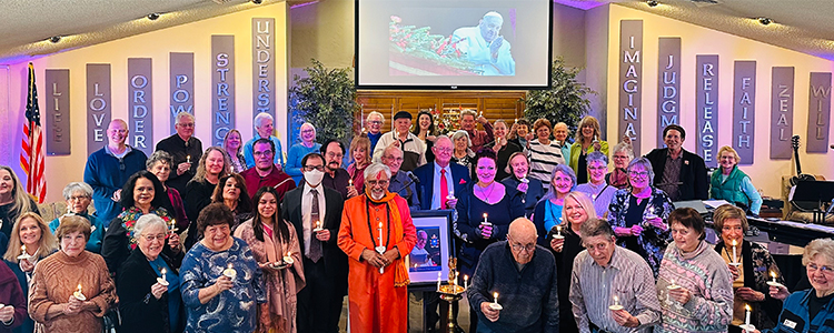 An atheist thinker Anthony Shafton also shared his thoughts. World-renowned musician, Oscar Dallas Smith, delivered raga “Misra Shivarangini” on bansuri (ancient side-blown bamboo flute), evoking specific emotions among listeners at the Unity Center of Reno, where this multi-faith service was held. Indigenous Spirituality Exponent & Sundancer Savina V. Zuniga performed the ancient spiritual ritual of burning sage. Candles were also lit by diverse religious leaders on a columnar traditional Hindu temple lamp.