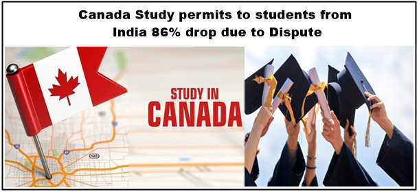 86% drop in study permits issued to Indians in the fourth quarter of last year from the previous quarter, to 14,910 from 108,940, according to the Canadian Immigration Dept.