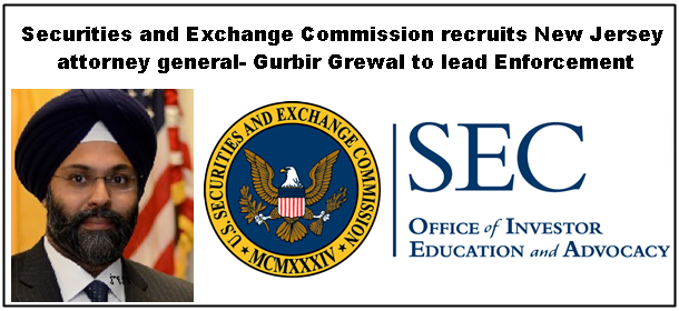 Securities and Exchange Commission recruits New Jersey attorney general- Gurbir Grewal to lead Enforcement