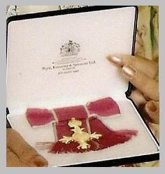 an OBE honoury achievement to Lucky Dhillon presented by Queen Elizabeth