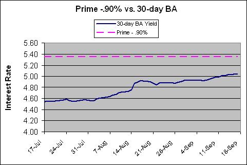 The following is a comparison of 30-day Banker’s Acceptance yields over the past 60 days: