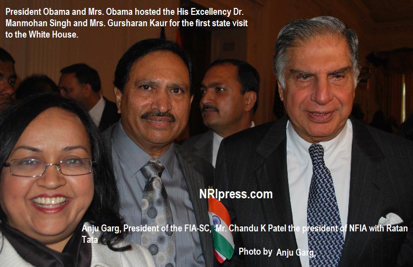 In the East room of the White house a smaller more intimate welcome ceremony was hosted. The ceremony started with National Anthem of Republic of India followed by National Anthem of United States of America. A short speech by President Obama recognized India as the a Free Democratic nation and a growing power in Asia. President Obama emphasized a need to have greater cooperation between India and United States which share many common values and many common threats like terrorism. Mr. Chandu K Patel the president of NFIA with Sachin Amin from NFIA were present. Anju Garg, President of the FIA-SC was also present for the welcome ceremony representing the Southern California Indo-Americans.