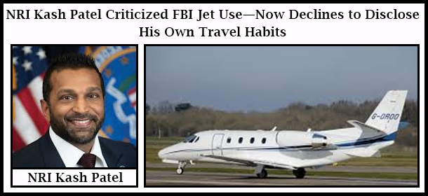 NRI Kash Patel Criticized FBI Jet Use—Now Declines to Disclose