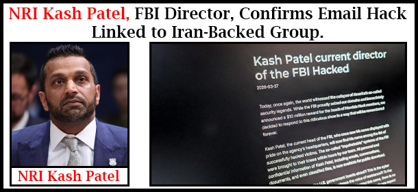 NRI Kash Patel, FBI Director, Confirms Email Hack Linked to Iran-Backed Group.