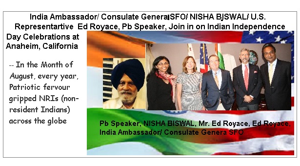 India Ambassador/ Consulate General SFO/ NISHA BISWAL/ Pb. Speaker/U.S. Representartive Ed Royace Join in on Indian Independence Day Celebrations