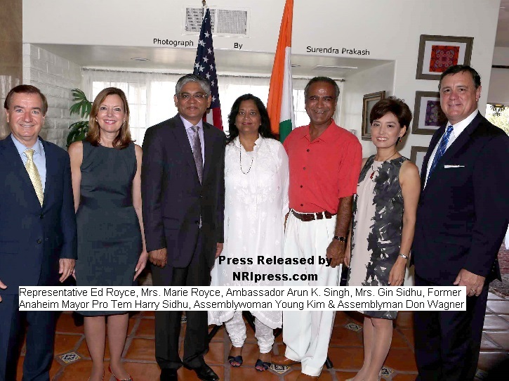 Former Anaheim Mayor Pro Tem Harry Sidhu and his wife Gin Sidhu hosted a very special India Independence Day Event honoring Ambassador Arun K. Singh and U.S. Representative Ed Royce (serving California’s 39th Congressional District), on Sunday, August 23, 2015, at their home in Anaheim, California.