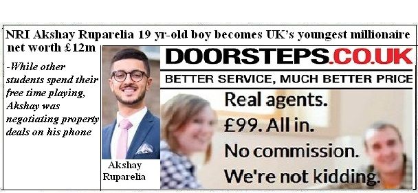 Within months, investors were buying shares in Ruparelia's firm "www.doorsteps.co.uk". In little more than a year, the company has been valued at 12 million pounds and the teenager has sold 100 million pounds worth of homes.