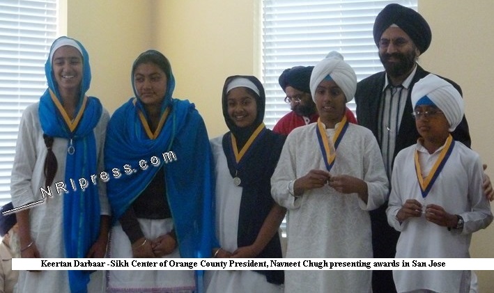 3 GNCA (Guru Nanak Children Academy, Santa Ana) Jatha teams (Junior Group I, Age Group 10-13 years) from Santa Ana Center participated in the Sri Hemkunt Foundation Western Region Keertan Darbar held in Sikh Gurudwara, San Jose on May 18, 2013. The Raag for this age group was "Gujari". Navneet Chugh, President of Sikh Center of Orange County graced Award Winning Ceremony of Group I participants in San Jose and encouraged the participants and parents to further this cause.