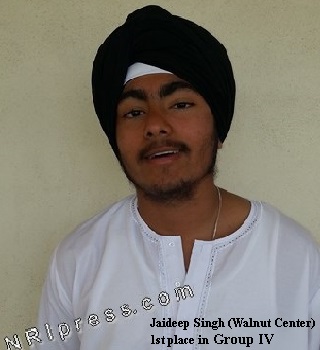 Participants included the 1st and 2nd place winners from the Center level competitions held earlier at the Sikh Center of Orange County, Buena Park, Walnut and San Diego Gurudwaras. A total of 29 contestants spoke on different topics prepared from books distributed by the Hemkunt Foundation and were judged by a panel of judges that represented the above mentioned Gurudwaras. Prizes were given by Dr. Arinder Chadha to all the contestants and the medals for the winners