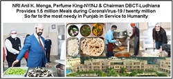 NRI Anil K. Monga, Perfume King-NY/NJ & Chairman DBCT-Ludhiana Provides 1.5 million Meals during CoronaVirus-19 / twenty million so far to the most needy in Punjab in Service to Humanity | Watch Video Click Here |
