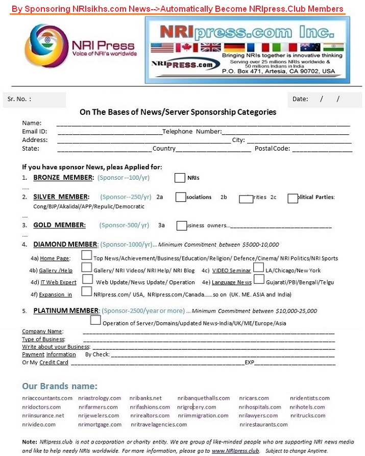 APPLICATION FOR SPONSOR NEWS AT NRIsikhs.com |