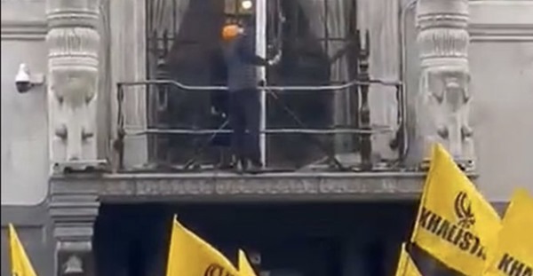 In a protest by Amritpal supporters at High Commission of India in London, a protestor climbed the mission's balcony and pulled down the Indian flag.