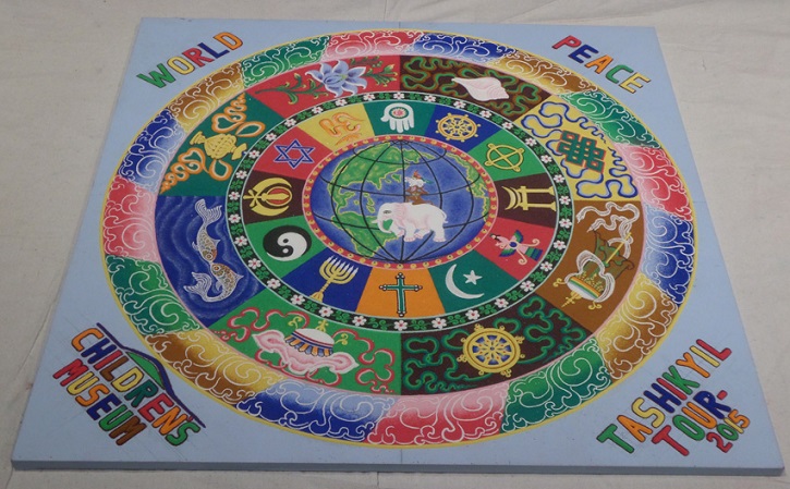 SAM6003: Completed Sand Mandala with interfaith and other Buddhist symbols