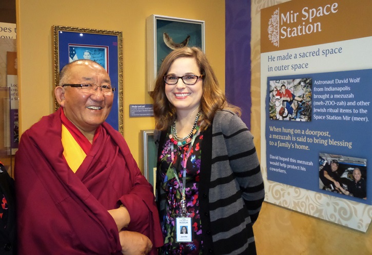 The Exhibit provides a glimpse, a first glance: The carefully laid-out beautiful displays seeming much like the stations of faiths, supported with videos, interactive elements, iconic sacred attractions representing the Christian, Moslem, Hindu, Buddhist, Sikh, Mormon, Australian Aborigines, and others; take us on a pilgrimage of their own. There are religious scriptures, precious documents and sacred objects: a block of stone from the Western Wall in Jerusalem; a 500-year old Quran, a statue of a Hindu deity Lord Ganesha; the teaching throne of His Holiness the Dalai Lama and a Peace Mandala; giant photographs of the Church of the Holy Sepulcher, an Ethiopian Cross, and fragments of Dead Sea Scrolls; a beautiful model and drawing of the Golden Temple of the Sikhs; and much, much more. There is a quiet room for slides of world sacred sites, for meditation, reading, music, story-telling of unique and moving spiritual experiences. The Eli Lilly Endowment Inc. is the principal sponsor of the Exhibit. Visitors would be proud of the time, labor, sensitivity, and reverence invested by the Museum staff and advisers to prepare the Exhibit. “Sacred Journeys” continues through February 2016 and then will travel to other cities.