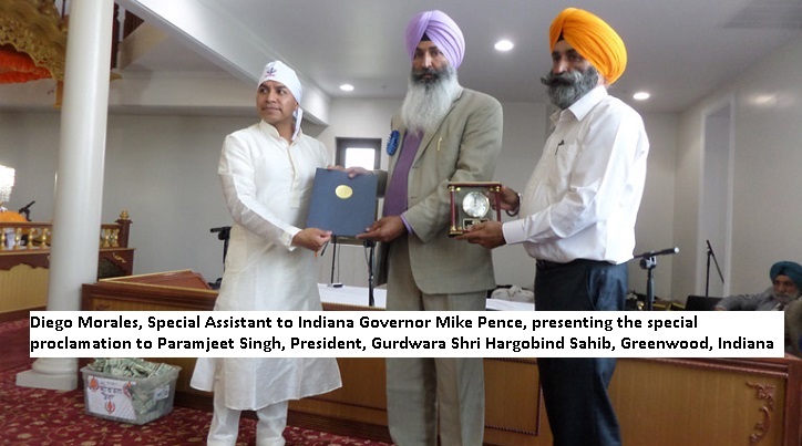 Taking center stage in the enlarging spiritual landscape of Indiana was the grand opening of Gurdwara Shri Guru Hargobind Sahib Ji in Greenwood. The Gurdwara dedication was attended by Honorable Diego Morales, Special Assistant to Indiana Governor Mike Pence; Greenwood Mayor and Police Chief, Indiana State Representatives, and over a thousand Sikh Americans and their friends.