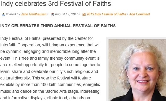The word about the Indy Festival of Faiths as a positive faith-based initiative, colorful and family-friendly celebration is traveling from the crossroads of America and rippling across the Heartland of America to places and cultures continents away. In time, we can imagine people coming to Indiana to attend and participate in culturally-creative and promising happenings that celebrate another facets of Indiana life and spirit: faiths, cultures, and rich heritage.