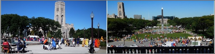The faithful spectators thronged the float as it passed by for a sacred glimpse and Prashad (sacred offering). Behind the float were hundreds of Sikh men, women, and children singing sacred hymns, a float carrying a Dhadi Jatha (Sikh religious bards), a van that displayed slides of sacred passages from Guru Granth Sahib in Punjabi with English translations, a float with photos of martyrs in Sikh struggles; and a contingent of Gatka (Sikh Martial Arts) demonstrators. There seemed to be a sea of Sikh Americans and Sikh spirit that had descended in Downtown Indianapolis streets to showcase their culture and traditions, pride and presence in their new home in America. The Parade ended with an Ardas (Prayer) at Veterans Memorial Plaza, the site of the gathering where Langar (free community meal) was served to all and the people engaged in fellowship.