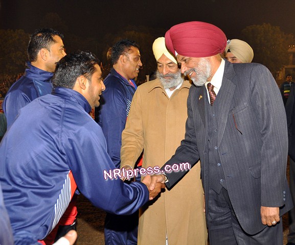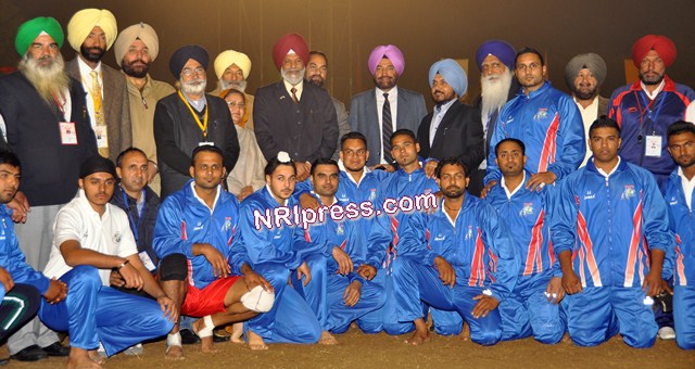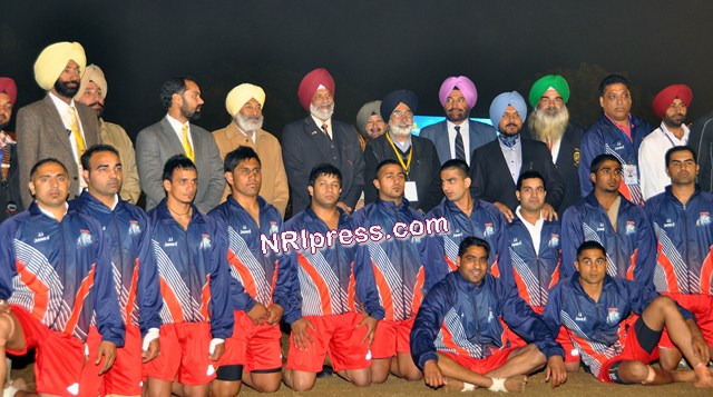 Mr. Surjit Singh Rakhra, Rural Development and Panchayat Minister, Mr. Balwinder Singh Bhunder, MP and Mr. Sikander Singh Maluka, Education Minister with Norway Team at YPS Stadium Patiala during 3rd World Cup Kabbadi 2012