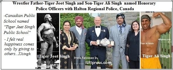 Most successful Indian pro wrestler in history, Philanthropist and humanitarian, Jagjeet Singh Hans is a NRI semi-retired professional wrestler, known better by his ring name Tiger Jeet Singh, along with his son Tiger Ali Singh named Honorary Police Officers with Halton Regional Police at the annual Halton Heroes event on Friday, September 16, 2016. Chief Stephen Tanner presented the Tigers with their honorary police officer badges and officially welcomed them as police ambassadors with the Halton Regional Police Service.